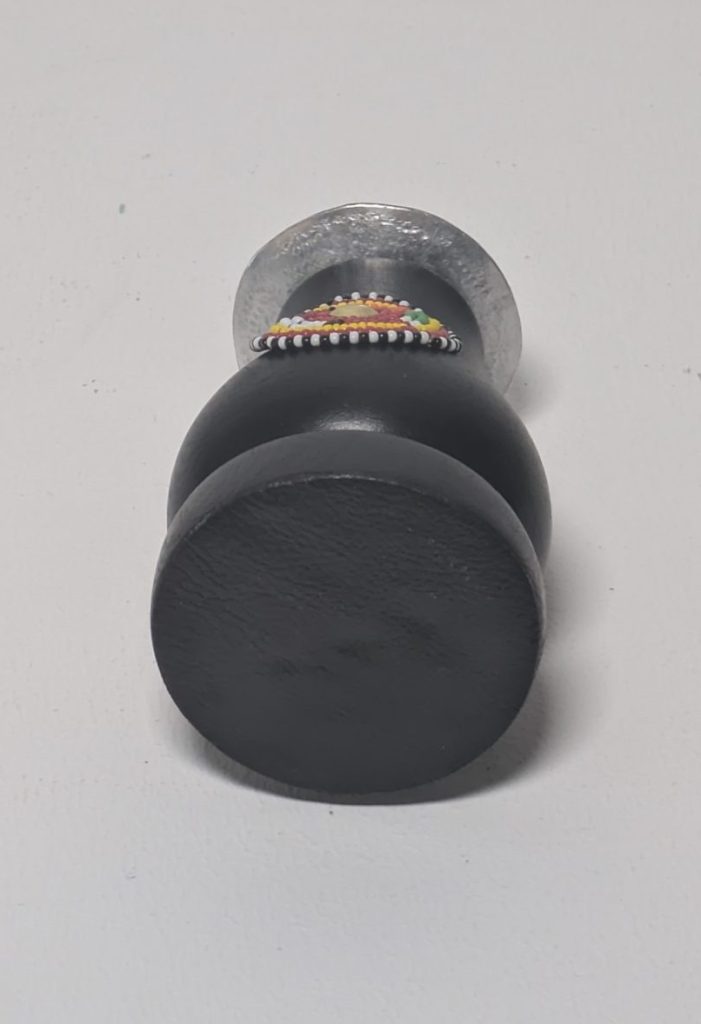 Kerzenständer aus Holz vom Jacarada Baum mit einer traditionellen Verzierung aus Rocailles Perlen.