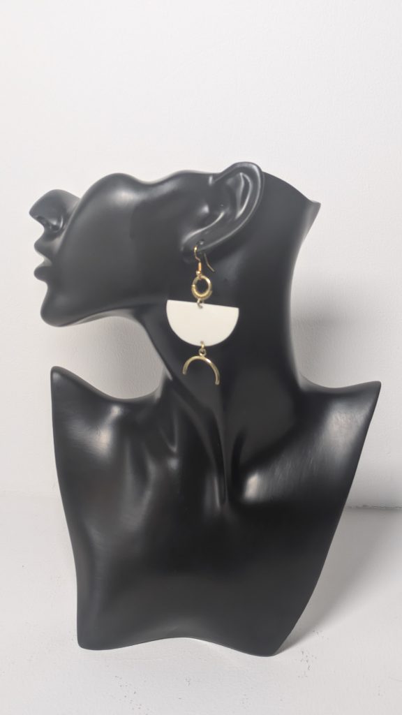 - Edles Design: Die Kombination aus strahlendem Messing und hellem Knochen verleiht den Ohrringen eine schlichte, aber luxuriöse Ästhetik.
