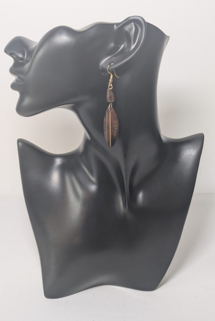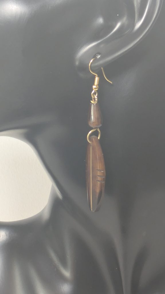 Ohrringe aus braun eingefärbten Knochen mit Messingeinlagen, handgefertigt in Kenia.