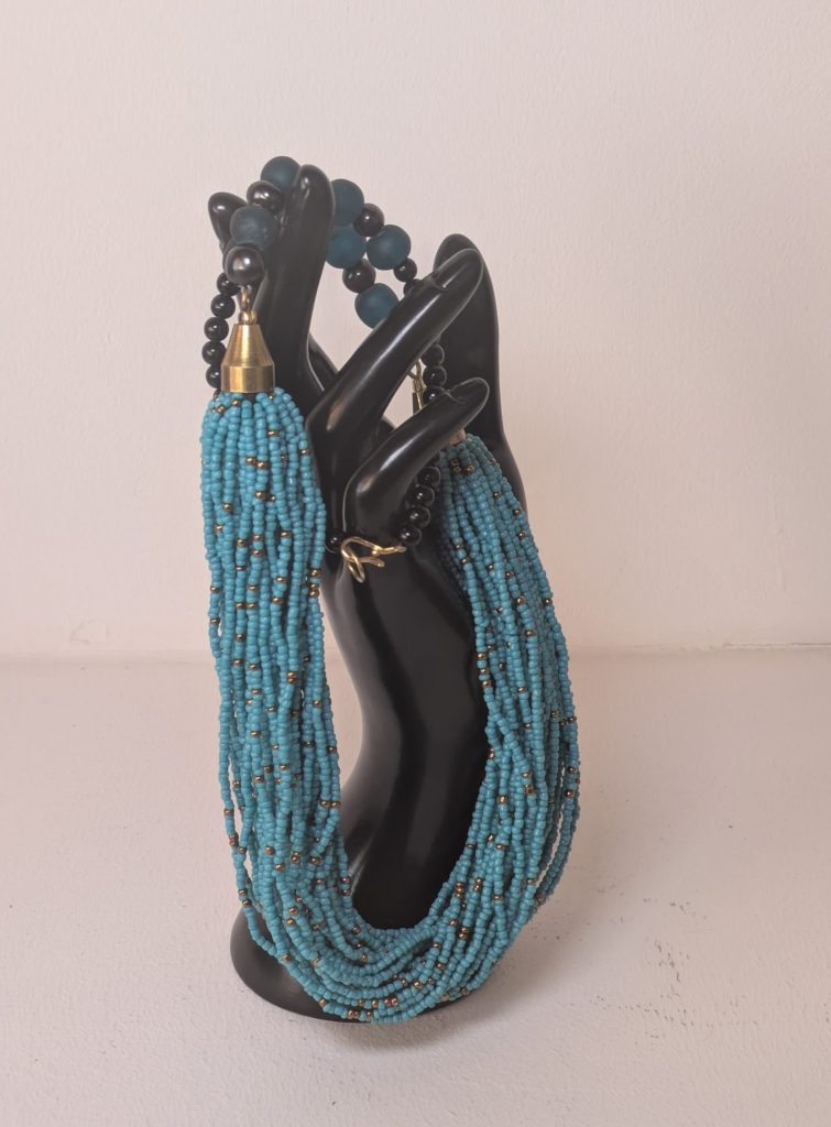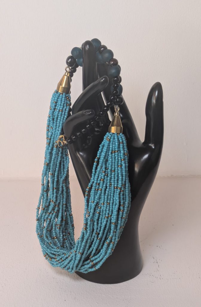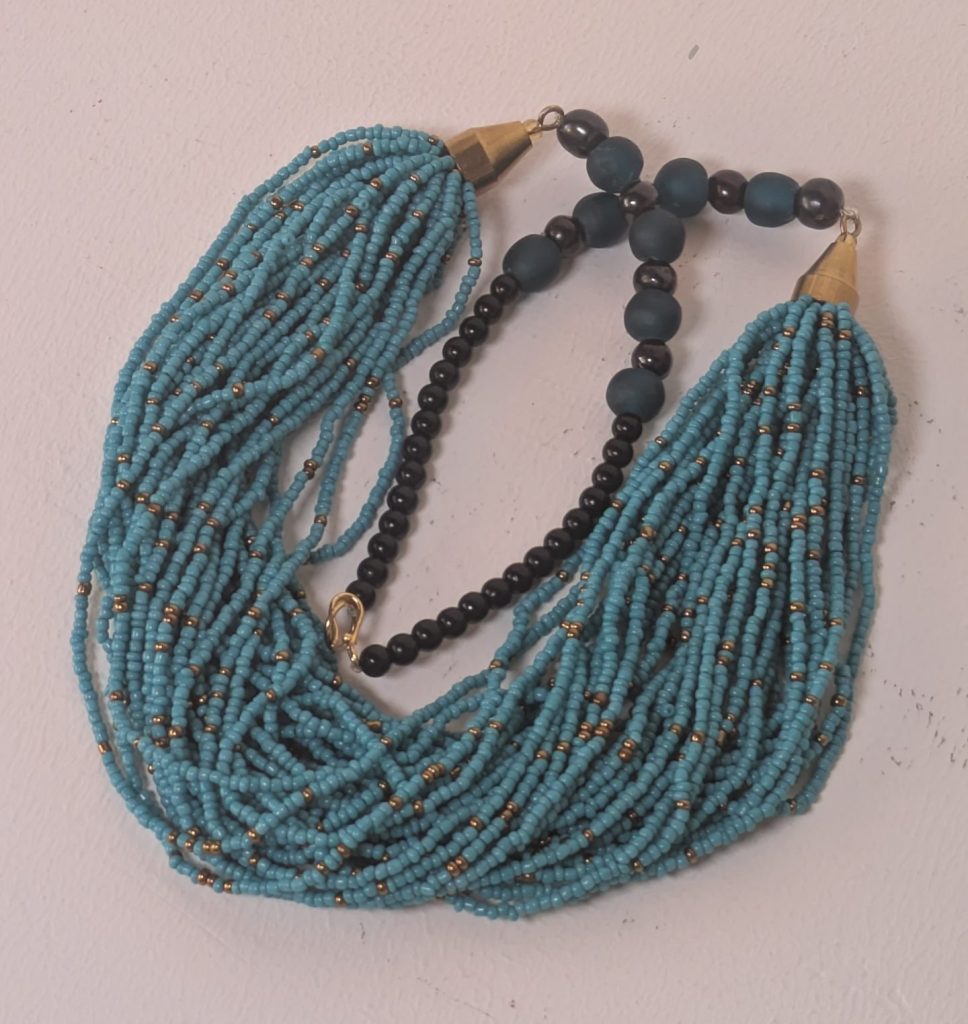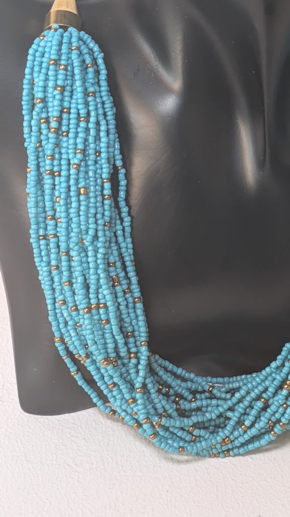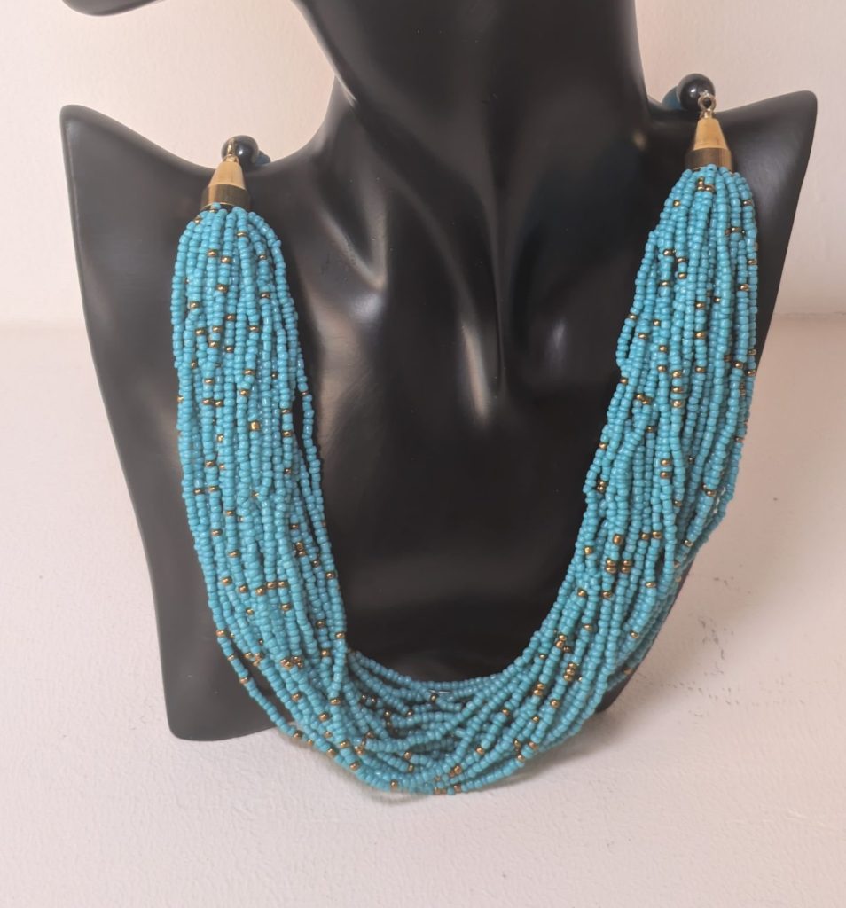 Handgefertigte Halskette mit türkisfarbenen Rocaille- und Glasperlen – Ein Hauch von Kenia für Ihr Outfit